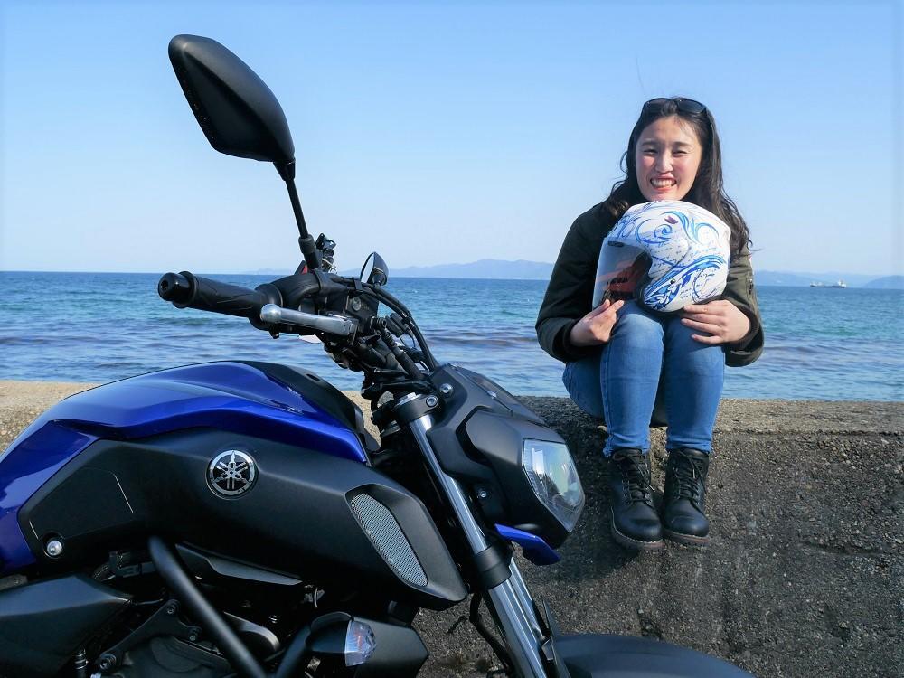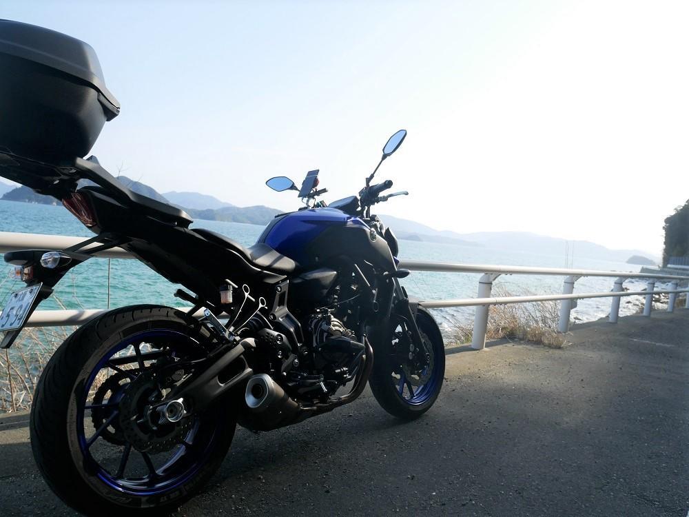 大好きなヤマハブルーのバイクでウキウキしながら最初の目的地へ向かいます。